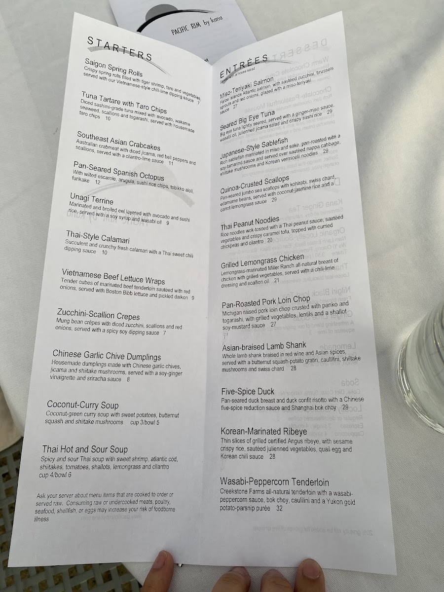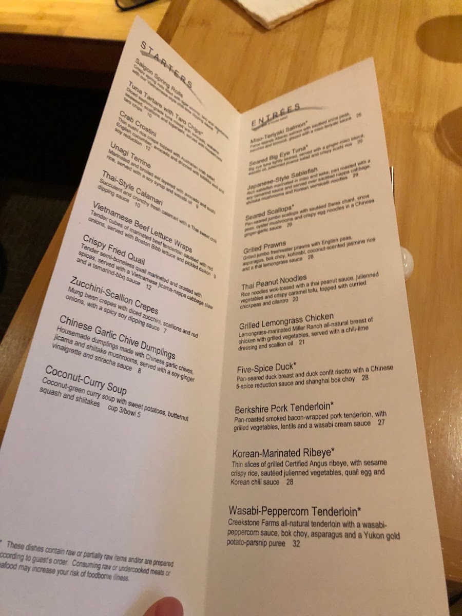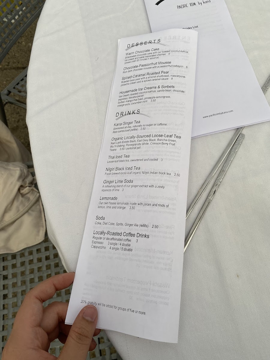 And don’t forget dessert! The Warm Chocolate Cake is a must-try, featuring bittersweet chocolate paired with toasted coconut-Kahlua ice cream and sake-macerated cherries for a heavenly experience at $9. For those craving something lighter, the Creme Brulee Tasting presents three miniature variations: green tea, ginger, and Thai makrut lime leaf, inviting you to savor a little bit of everything.